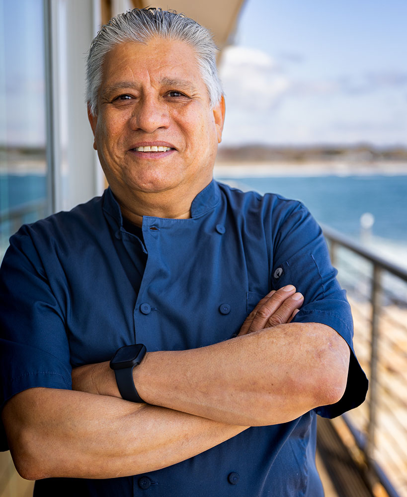 Chef Angel Cardona was born in Ambato, Ecuador and moved to the United States in 1976. He relocated to New York, beginning his career as a dishwasher to understand the foundation of the kitchen for six months. He not only learned the important role dishwashing plays in the kitchen, but he also discovered his newfound love for cooking. When he moved to Rhode Island in 1995, he was thrown right into the action as a chef, happily so. When he brought his passion and dedication to Narragansett, he never looked back. Chef Angel has been the Executive Chef at The Coast Guard House for 14 years. His time there has been spent preparing, creating, and serving dishes that have one required ingredient: love. “When you put love into your food, that is what makes it beautiful.” Chef Angel gives an abundance of gratitude to his wife of 30 years and two sons, supporting his passion. He has thoroughly enjoyed being the executive chef and working with The Coast Guard House family, the owners, team, and all the experiences he has endured as an executive chef.