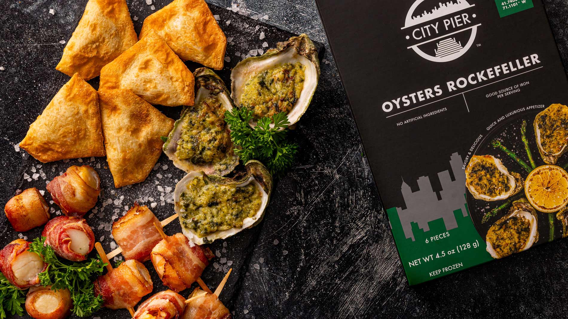 Take the everyday to gourmet with a luxurious, deliciously convenient assortment of high-quality ready to cook specialty seafood appetizers. From hand wrapped in bacon sea scallops to stylishly bamboo-skewered salmon satay, your app game is about to level up!